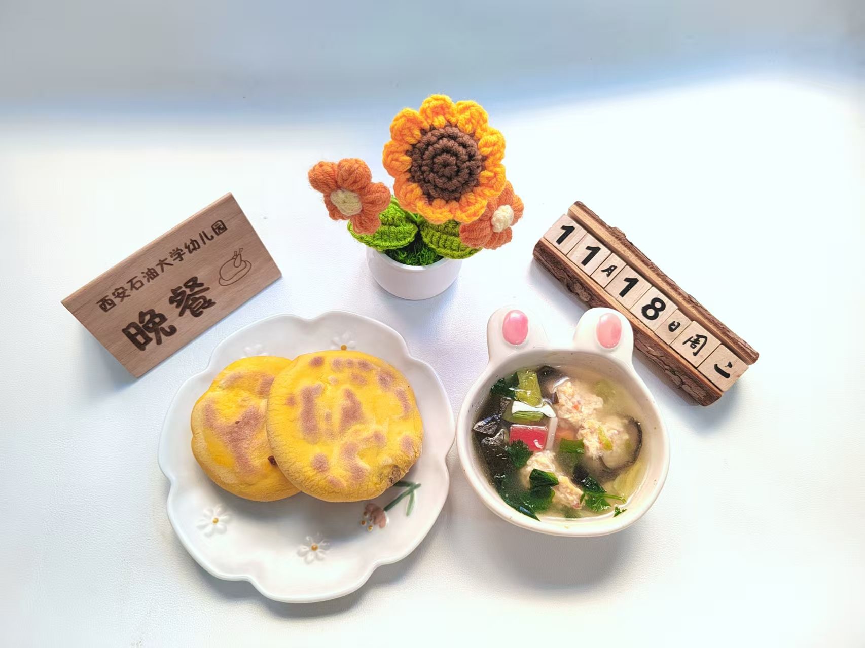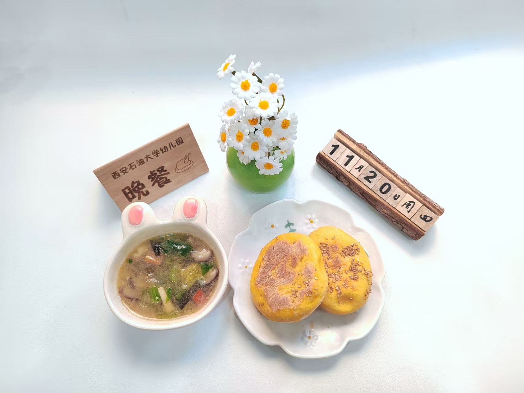 晚餐:土豆南瓜芝麻饼、什锦鲜蔬汤