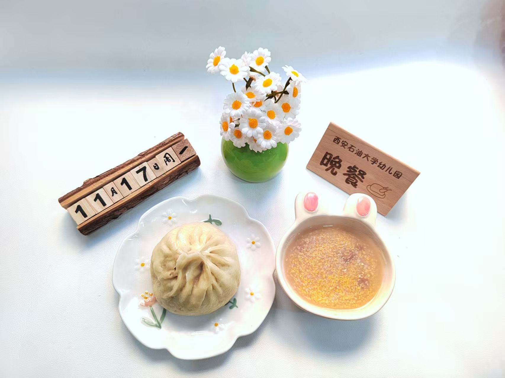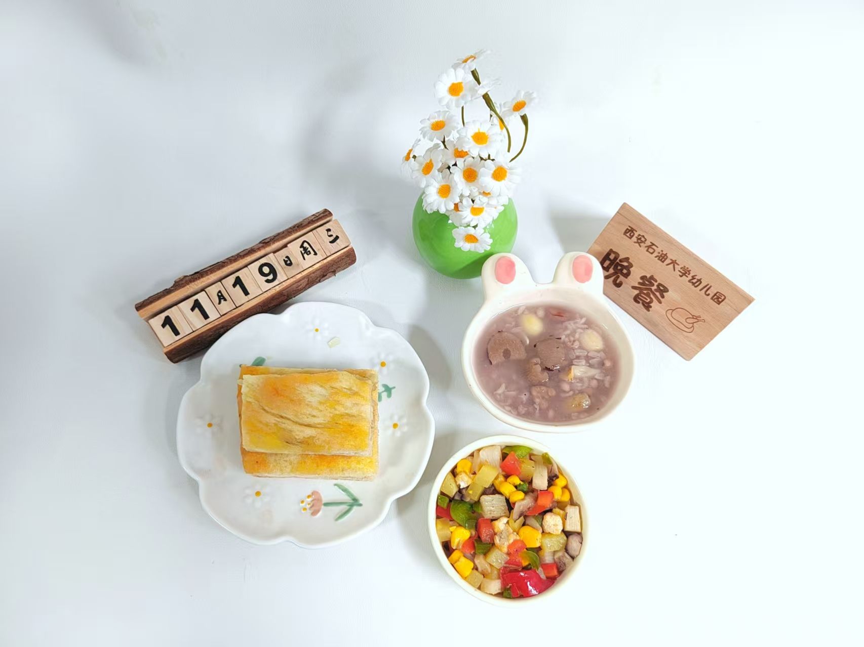 晚餐:葱花饼、宝贝鲜蔬烩、八宝粥